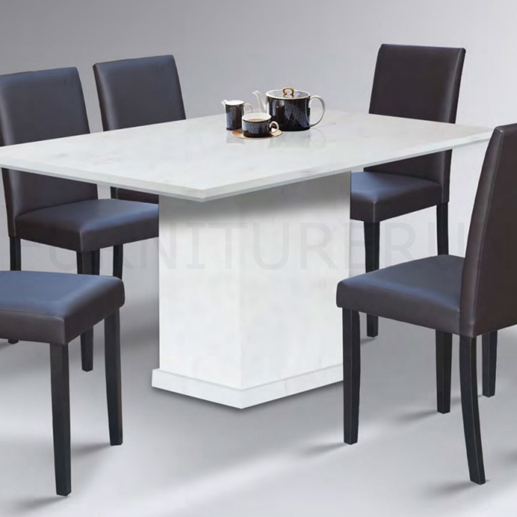 Table - H760 x W800 x L1400MM Chair - H900 x D540 x W430MM Fully Marble Dining TableWenge Spray Paint Rubberwood LegPVC Dark Brown