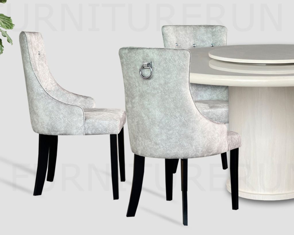 Table M35127 - H760 x D1500 x W1500 + 800MM Top T50MM / Natural Coating Marble Top & LegChair C17W - H930 x D530 x W470MM Velvet Fabric / Solid Rubberwood Leg