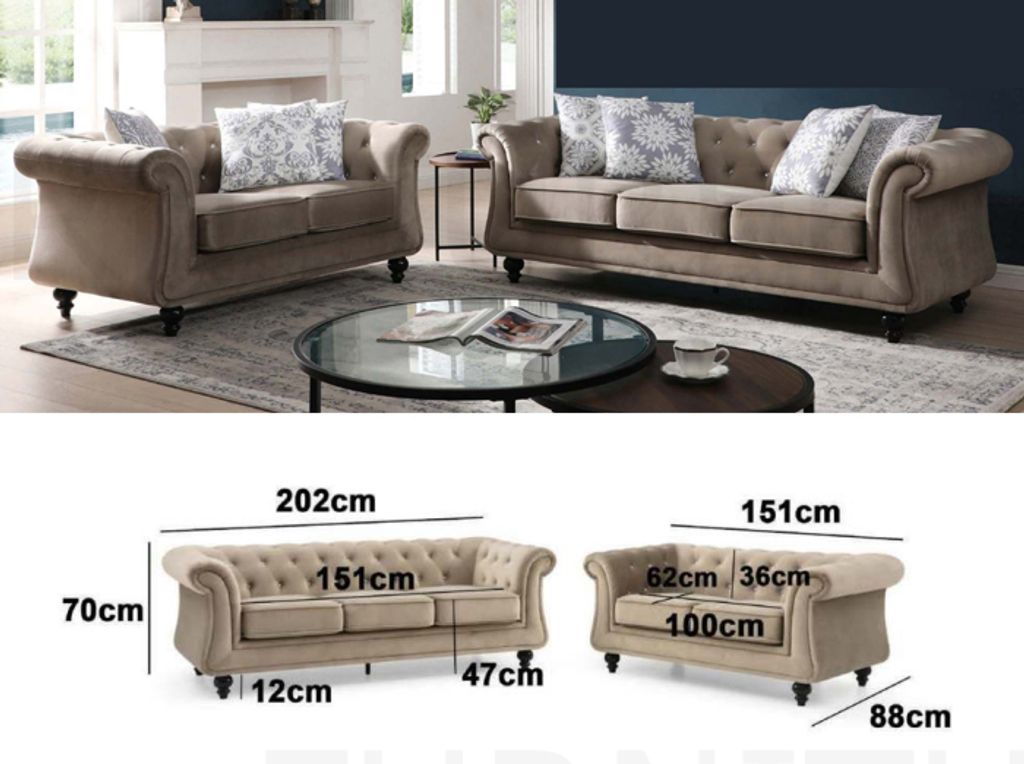 2 Seater - H700 x D880 x W1510MM 3 Seater - H700 x D880 x W2020MM Premium Linen Fabric + Zag Spring + New Foam + Wooden Leg