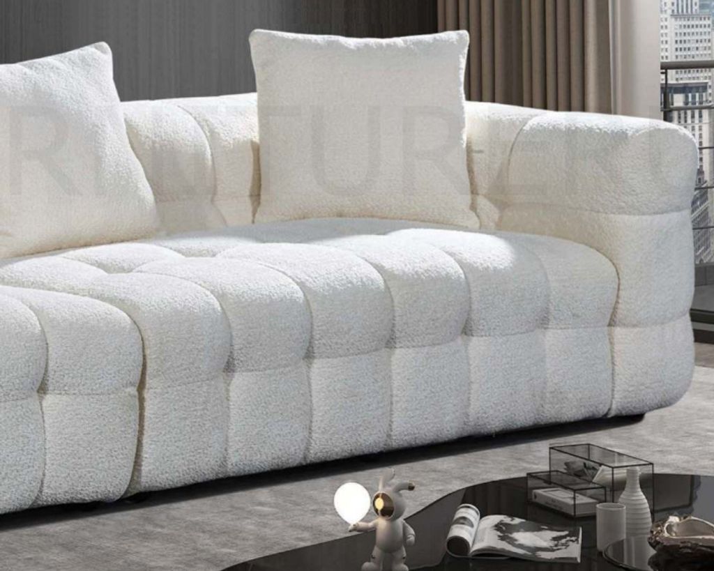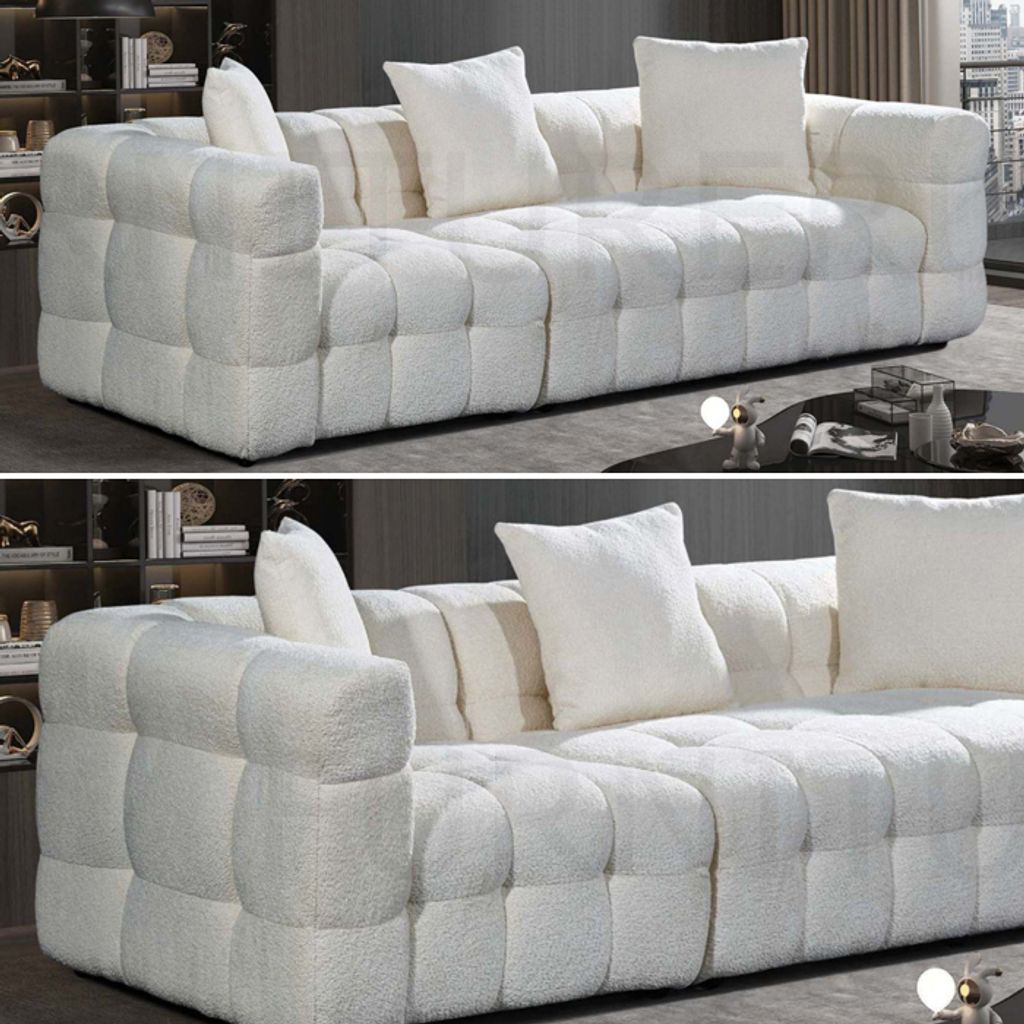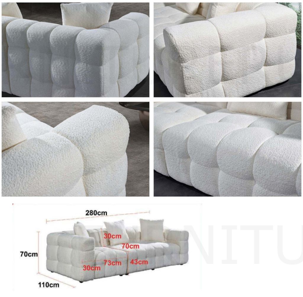 Sofa - H700 x D1100 x W2800MM Inner Frame - Solid Coniferous Pine Wood (2 Years Warranty)Seating - High Density Foam + SupraCoil + Elastic Belt (2 Years Warranty)Upholstery - Lamb Fleece Fabric