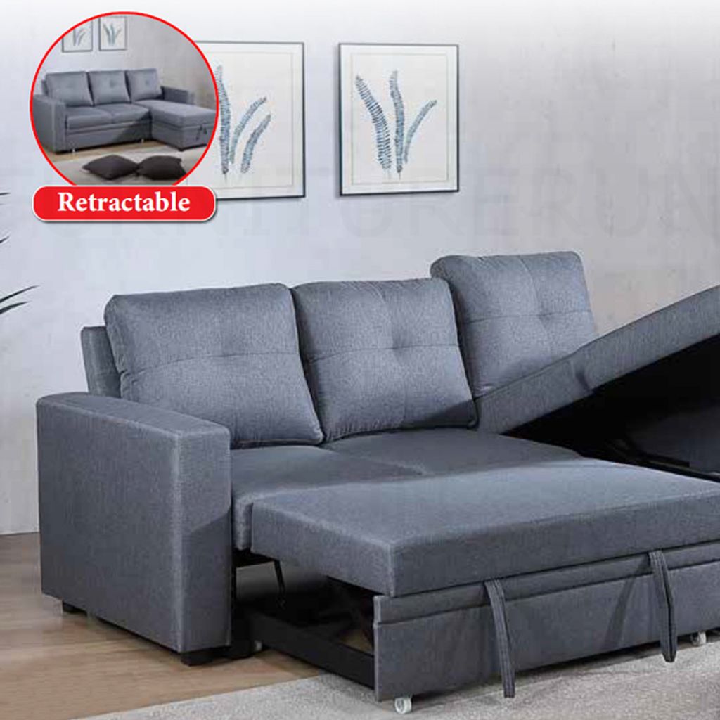 H830 x D1070/1400 x W1960MMGrey, BrownSolidwood Frame with Zag Spring Base and Pull Out Mechanism with Linen Fabric + Storage Box