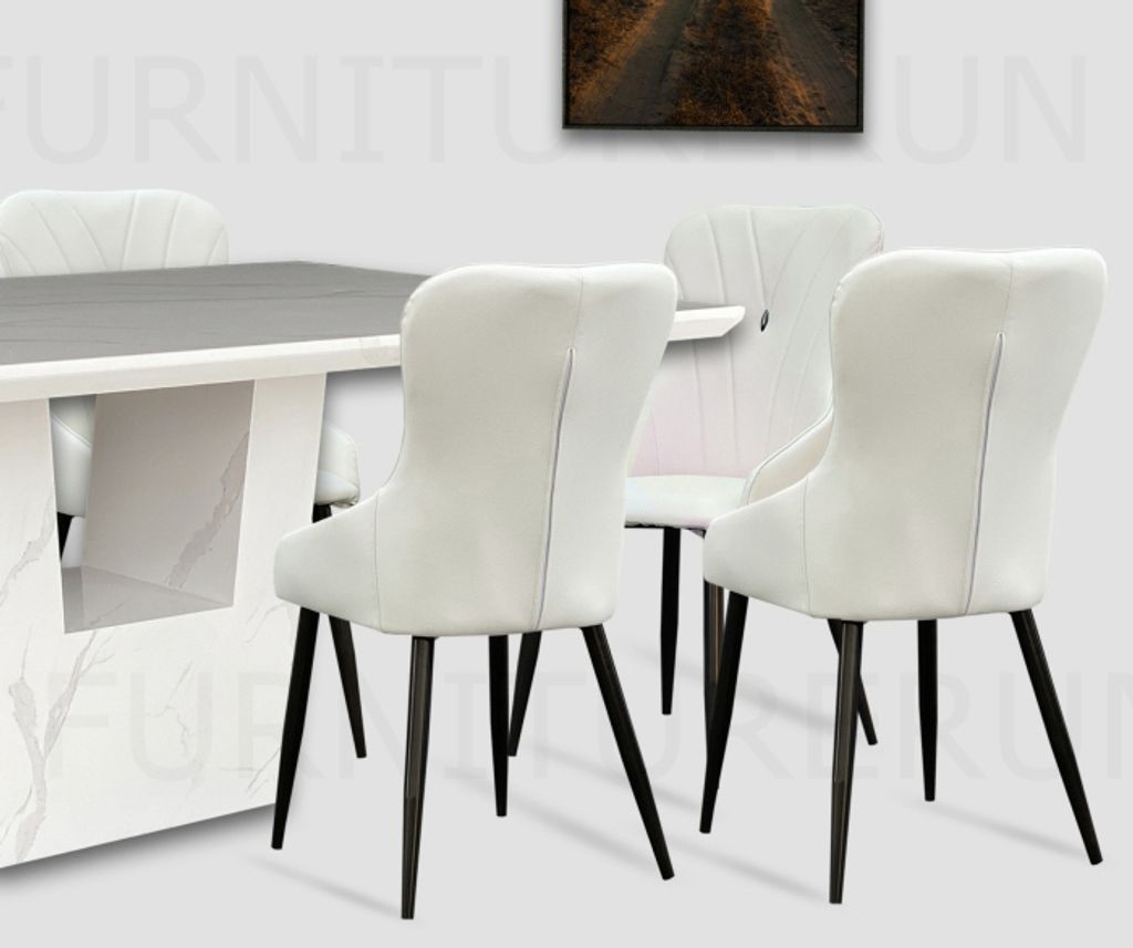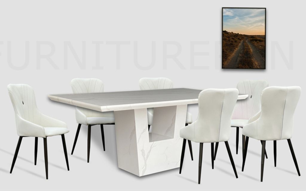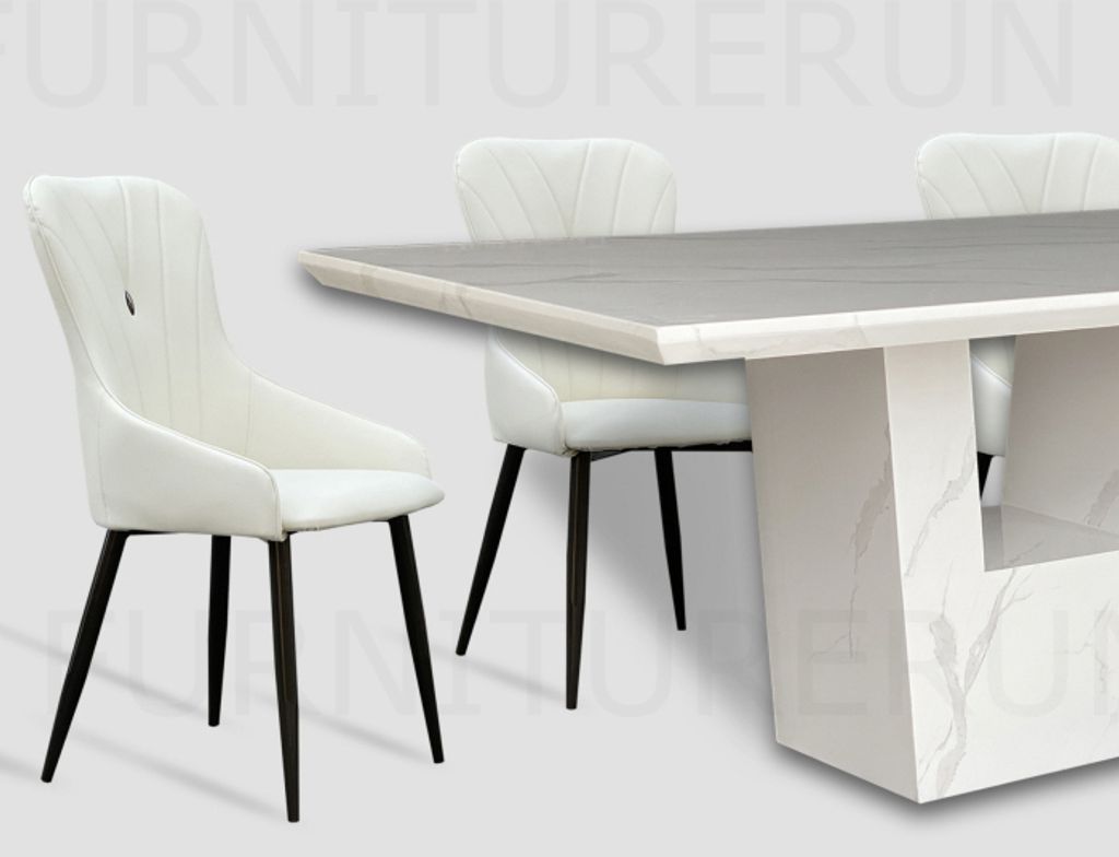 Table M75124 - H760 x D1100 x W2100MM Top T50MM / Natural Coating Marble Top & LegChair C1320B - H930 x D500 x W480MM Pet Friendly Leather Seat / Black Titanium Metal Leg