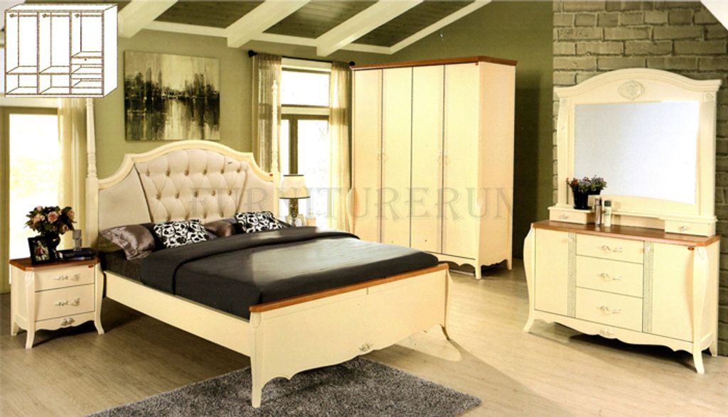 Wardobe (4 Door) - H79" x D24" x W66" 5' Bed - H52" x D81" x W63" Dressing Table - H73" x D15" x W47" Side Table - H21" x D15" x W19" X 2pcsMattress Not Included
