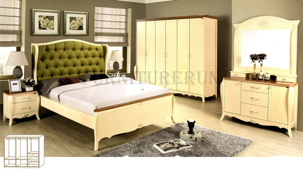5' Bed - H52" x D87" x W63" - RM 1,959Dressing Table - H73" x D15" x W47" - RM 1,539Side Table - H21" x D15" x W19" - RM 559 X 2pcsWardobe (6 Door) - H79" x D24" x W96" - RM 4,279