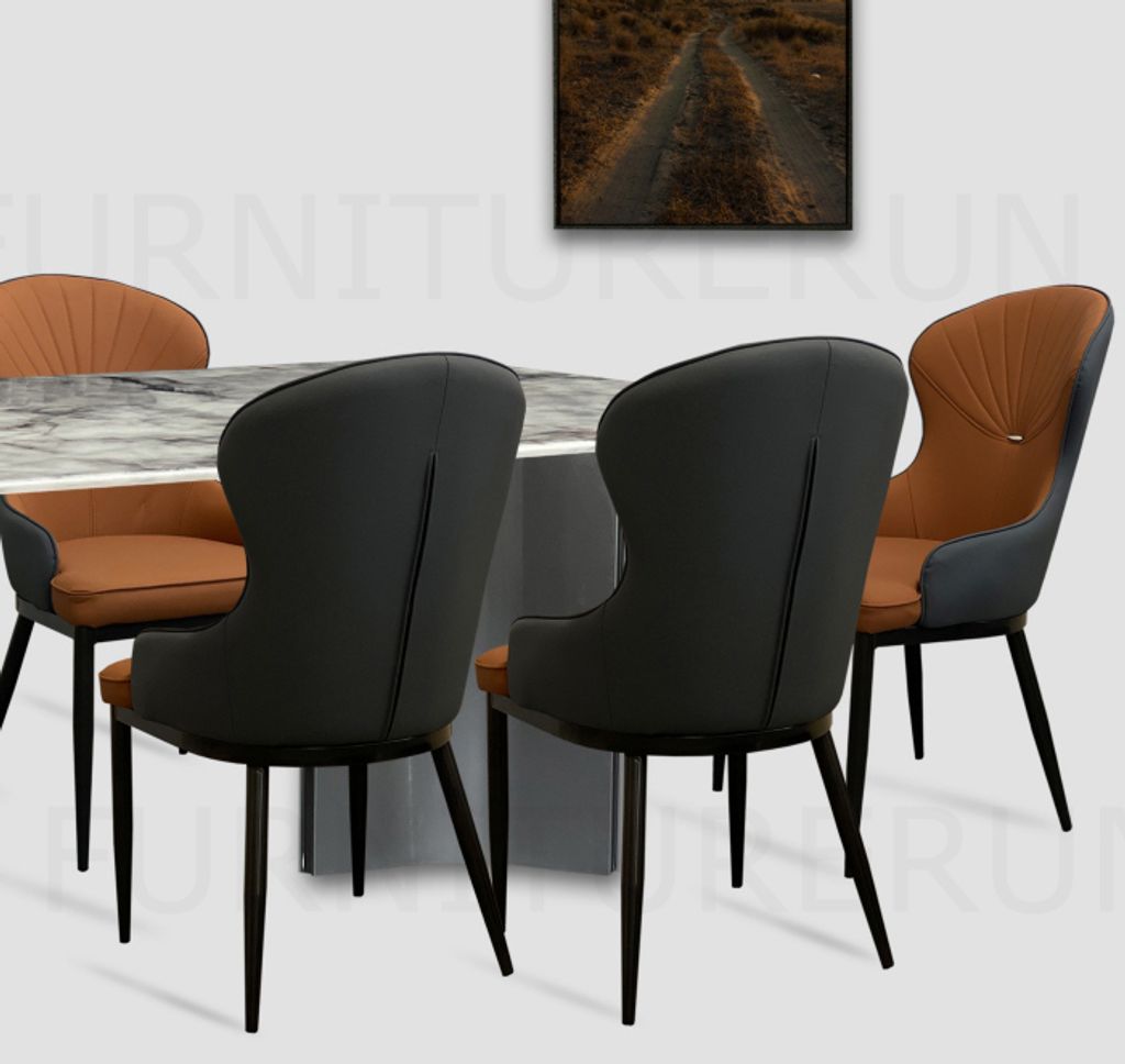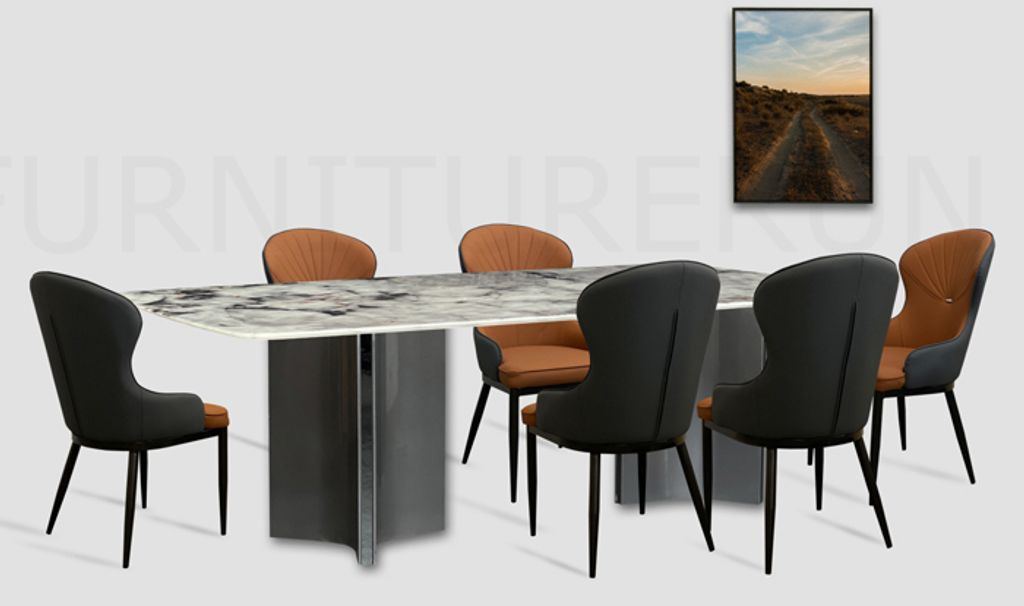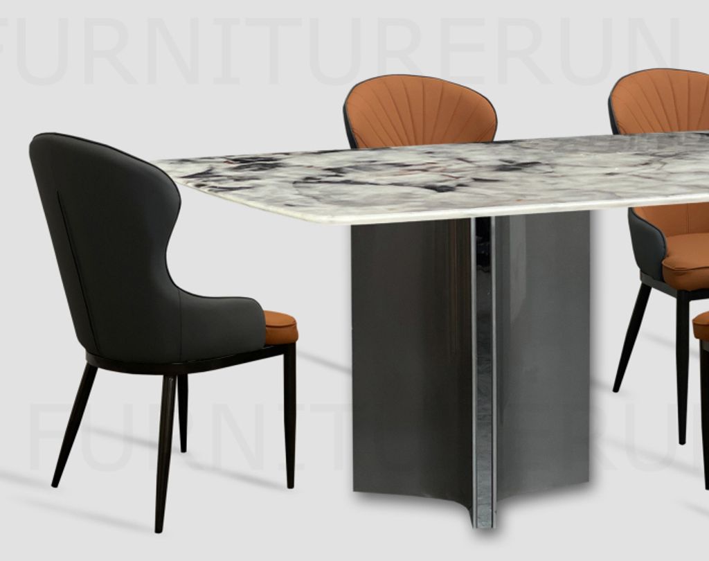 Table M3703 T49 - H760 x D1100 x W2100MM Top T20MM / Natural Coating Stone Top & Black Steel LegChair C1300B - H950 x D510 x W490MM Pet Friendly Leather Seat / Black Titanium Metal Leg