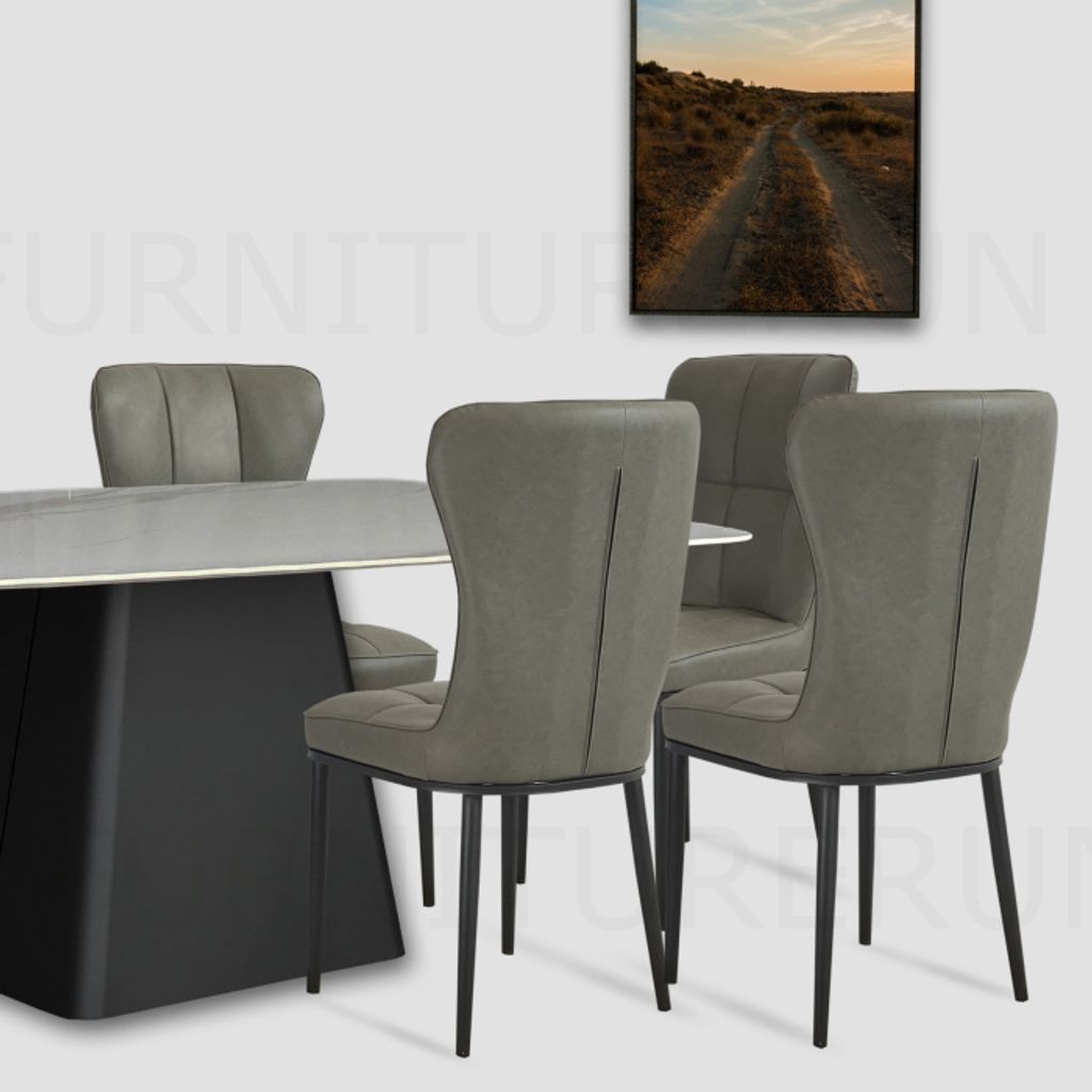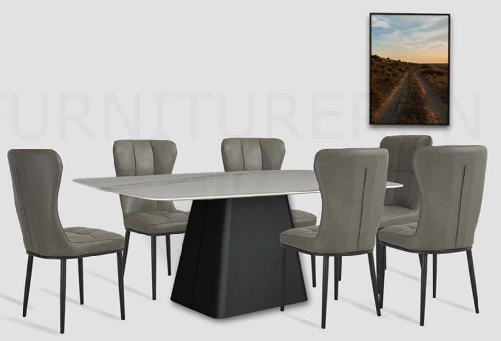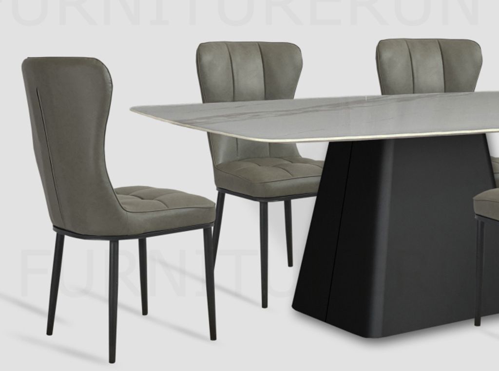 Table MT8603 T35 - H760 x D900 x W1800MM Top T12MM / Sintered Stone Top Glossy Feeling & Black Metal LegChair C1230G - H950 x D430 x W420MM PU Leather Seat / Black Metal Leg